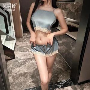 Upgrade your bedtime with this luxury satin nightwear set. The lace trim and silky fabric offer a glamorous yet comfortable fit. Ideal as a gift or personal treat.